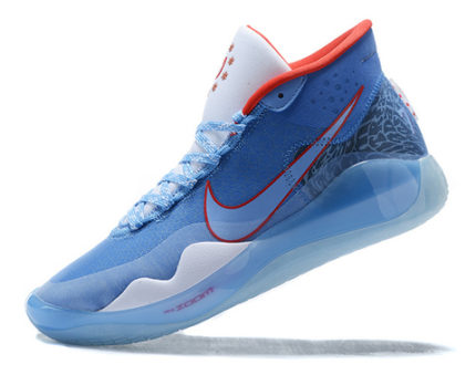 Тринадцатое поколения баскетбольных кроссовок Кевина Дюранта — Nike KD 13. Мы видим классические баскетбольные кроссовки средней высоты с хорошей поддержкой голеностопна. Nike KD 13 имеют такую же конструкцию, что и KD 12. Новые детали включают крылья под шнуровку, похожие на Nike Dunk, нейлоновый сетчатый верх и большой логотип Swoosh, который погружается в подошву. В баскетбольных кроссовок Nike KD 13 установлен полноразмерный баллон Zoom. Суть амортизирующей подушки, вернуть количество энергии, которое вы вложили в нее. Баскетбольные кроссовки Nike KD 13, отлично подойдут для лёгких форвардов.